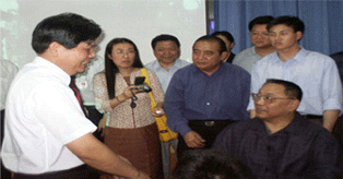 梅安富先生軍人出身(曾經在中國馬蘭核試驗基地工作十多年,為核武器發展做出了卓越貢獻、被評為八級軍殘)、高級經濟師、中共優秀黨員、天臺山人氏,F任中共鄭州臺州商會支部委員會書記、常務副會長兼秘書長、河南省保健品協會副會長、全國政協副主席、中共中央委員、中國殘聯主席鄧樸方先生與鄭州臺州商會支部書記兼秘書長、《百花散》傳人梅安富先生親切交談鄭州市腫瘤康復協會名譽會長。2005年5月,作為臺州古代中醫秘方梅氏《百花散》